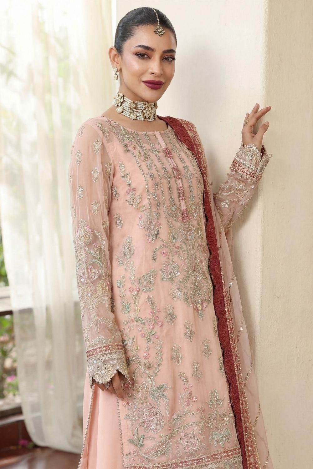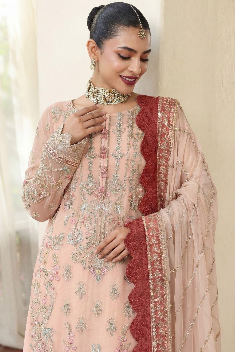 DISCOVER TIMELESS ELEGANCE WITH THIS ENSEMBLE, THE BEST CHOICE FOR A SOPHISTICATED AND ROYAL LOOK. THIS UNSTITCHED 3-PIECE MASTERPIECE FROM OUR LUXURY ORGANZA COLLECTION COMBINES INTRICATE EMBROIDERY WITH VIBRANT EMBELLISHMENTS, ENSURING ELEGANCE IN EVERY STITCH. DESIGNED FOR THE MODERN WOMAN, THIS AFSAR ARTICLE PROVIDES BOTH STYLE AND LUXURY FOR THE 2026 FESTIVE SEASON.