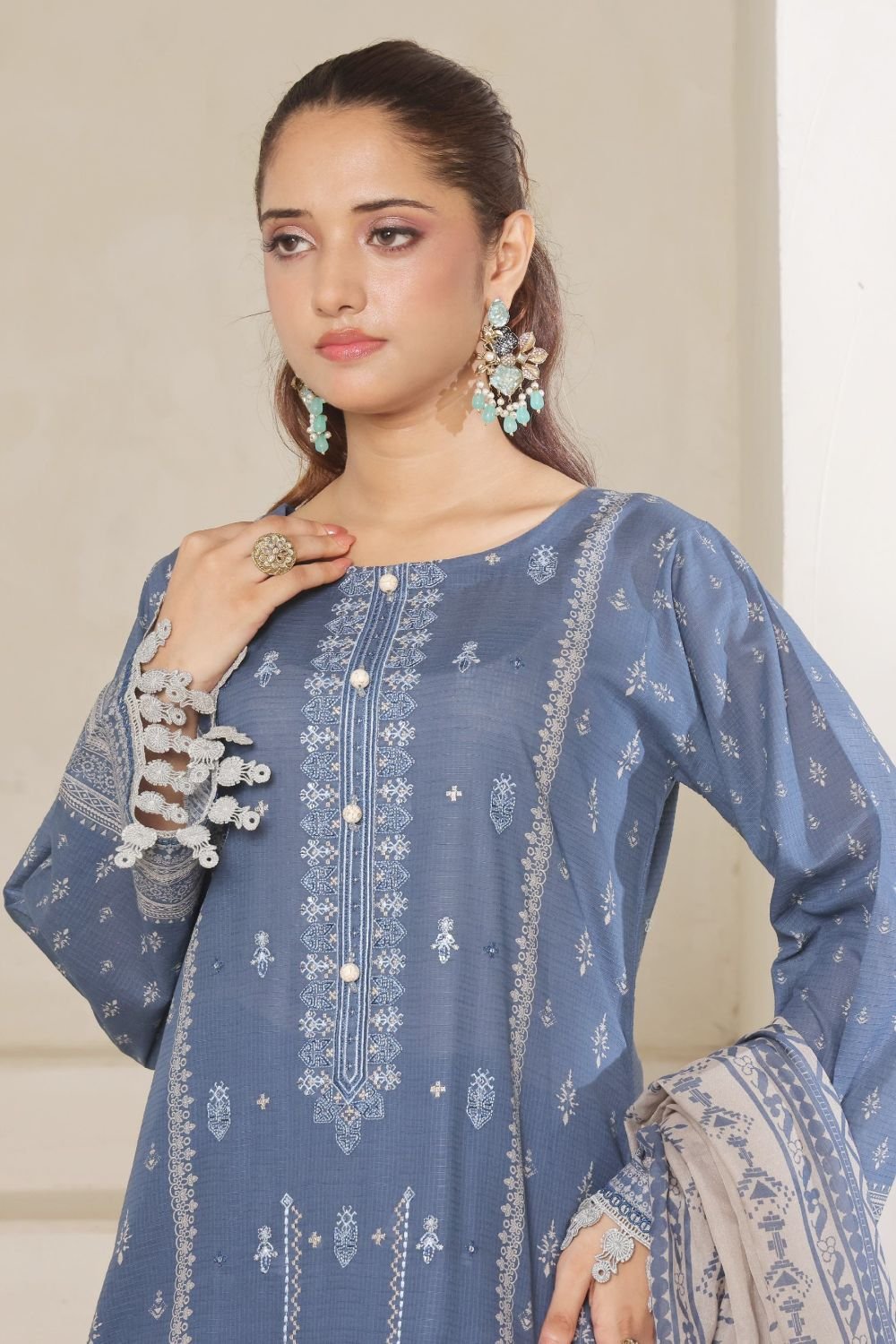 • Dupatta: Luxury Pallu Embroidered Lawn with Digital Printed details.