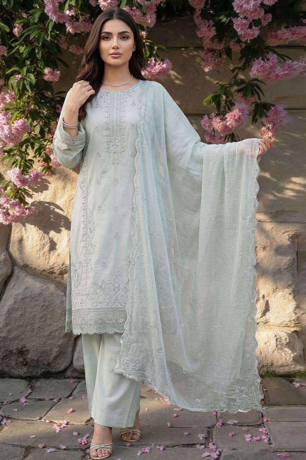 STAY AHEAD IN STYLE WITH THIS SELECTION, THE BEST CHOICE FOR LUXURY EVENTS AND PREMIUM GATHERINGS. THIS SEMI-STITCHED 3-PIECE MASTERPIECE COMBINES INTRICATE CHICKEN KARI LAWN EMBROIDERY WITH MODERN ARTISTRY, ENSURING A REGAL LOOK FOR EVERY WOMAN. DESIGNED FOR ELEGANCE, THIS ARTICLE PROVIDES BOTH SOPHISTICATION AND COMFORT FOR THE FESTIVE SEASON.