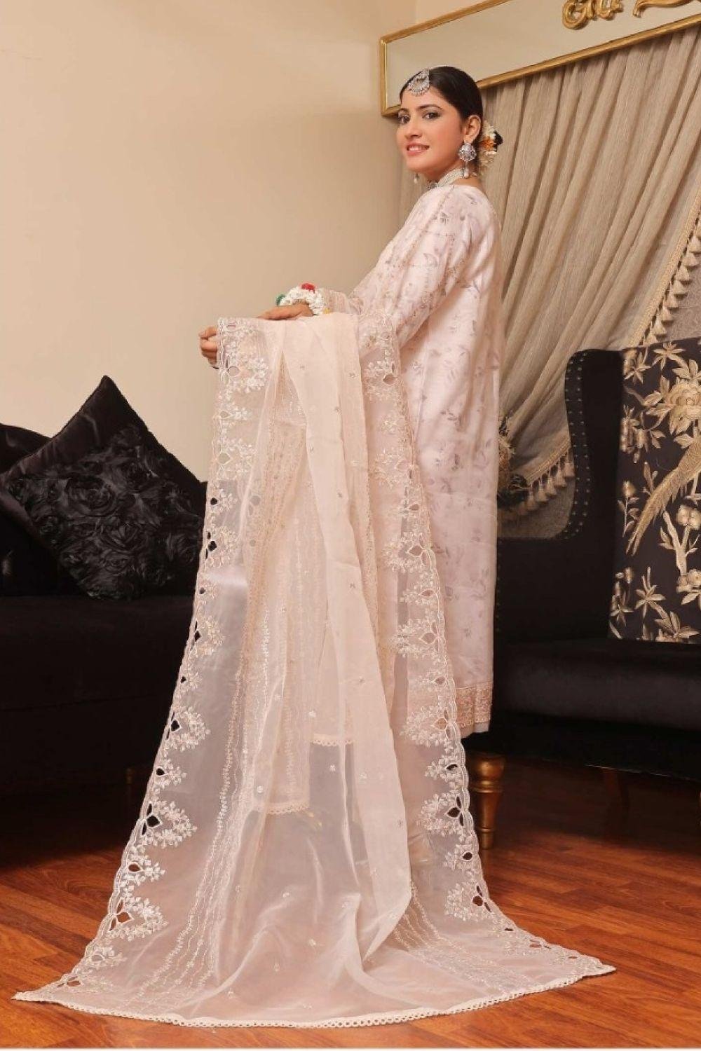 STAY AHEAD IN STYLE WITH THE HALEEMA COLLECTION, THE BEST CHOICE FOR WEDDINGS AND PREMIUM EVENTS. THIS SEMI-STITCHED MASTERPIECE COMBINES HEAVY ORGANZA EMBROIDERY WITH MODERN ARTISTRY, ENSURING A REGAL LOOK FOR EVERY WOMAN.