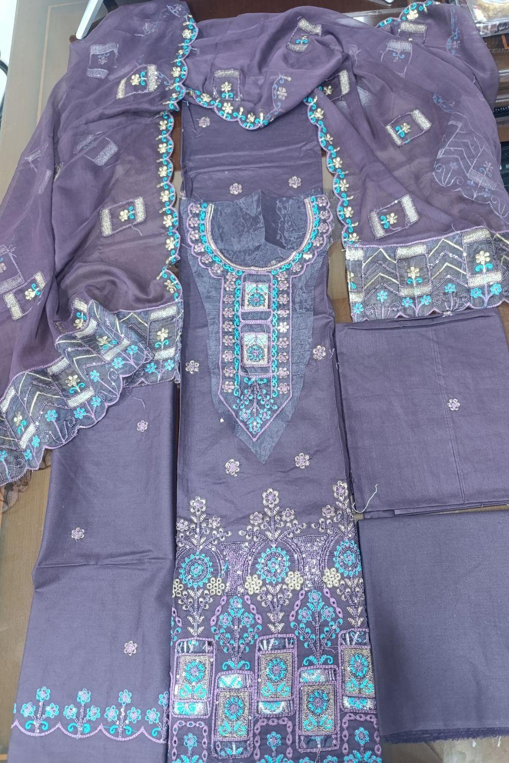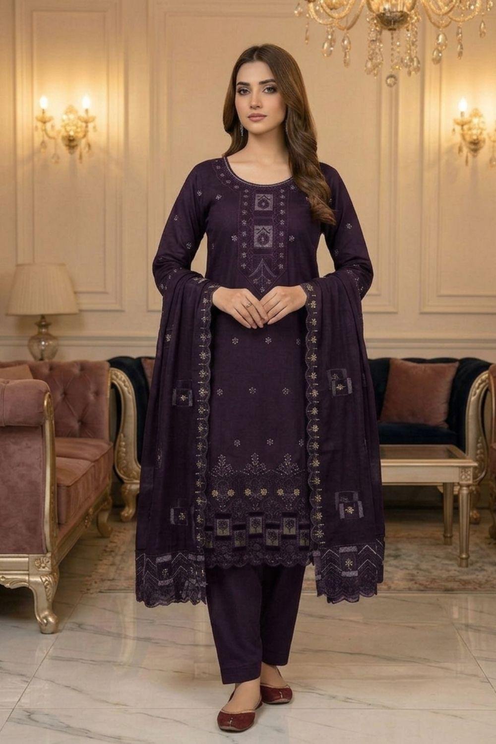 TYPE: 3-PIECE UNSTITCHED LUXURY ENSEMBLE.