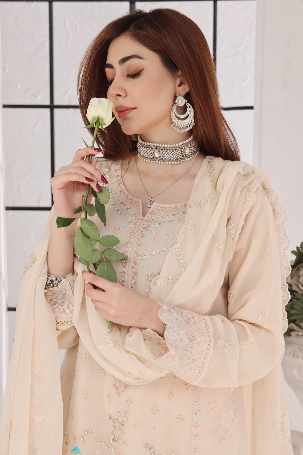Whether you are attending a wedding or a festive event, this outfit ensures a graceful look. Order your LUXURY EMBROIDERED CHIFFON suit today and elevate your style.