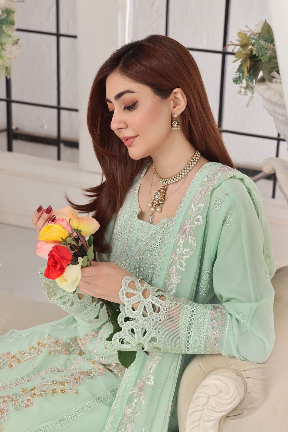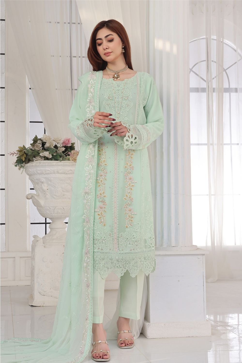 Whether you are attending a wedding or a festive event, this outfit ensures a graceful look. Order your LUXURY EMBROIDERED CHIFFON suit today and elevate your style.