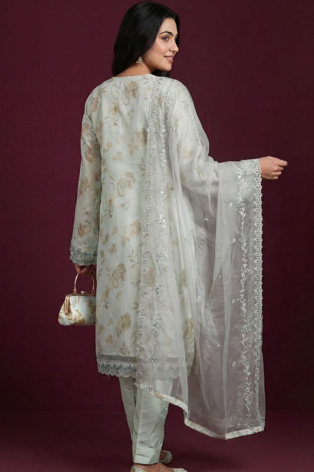 LUXURY EMBROIDERED ORGANZA SUIT | EVA | PREMIUM CLUTCH & KHOSA COLLECTION