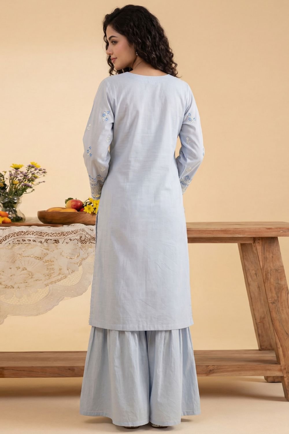 • Work: Premium Laser-Kari cut-work with multi-thread embroidery.