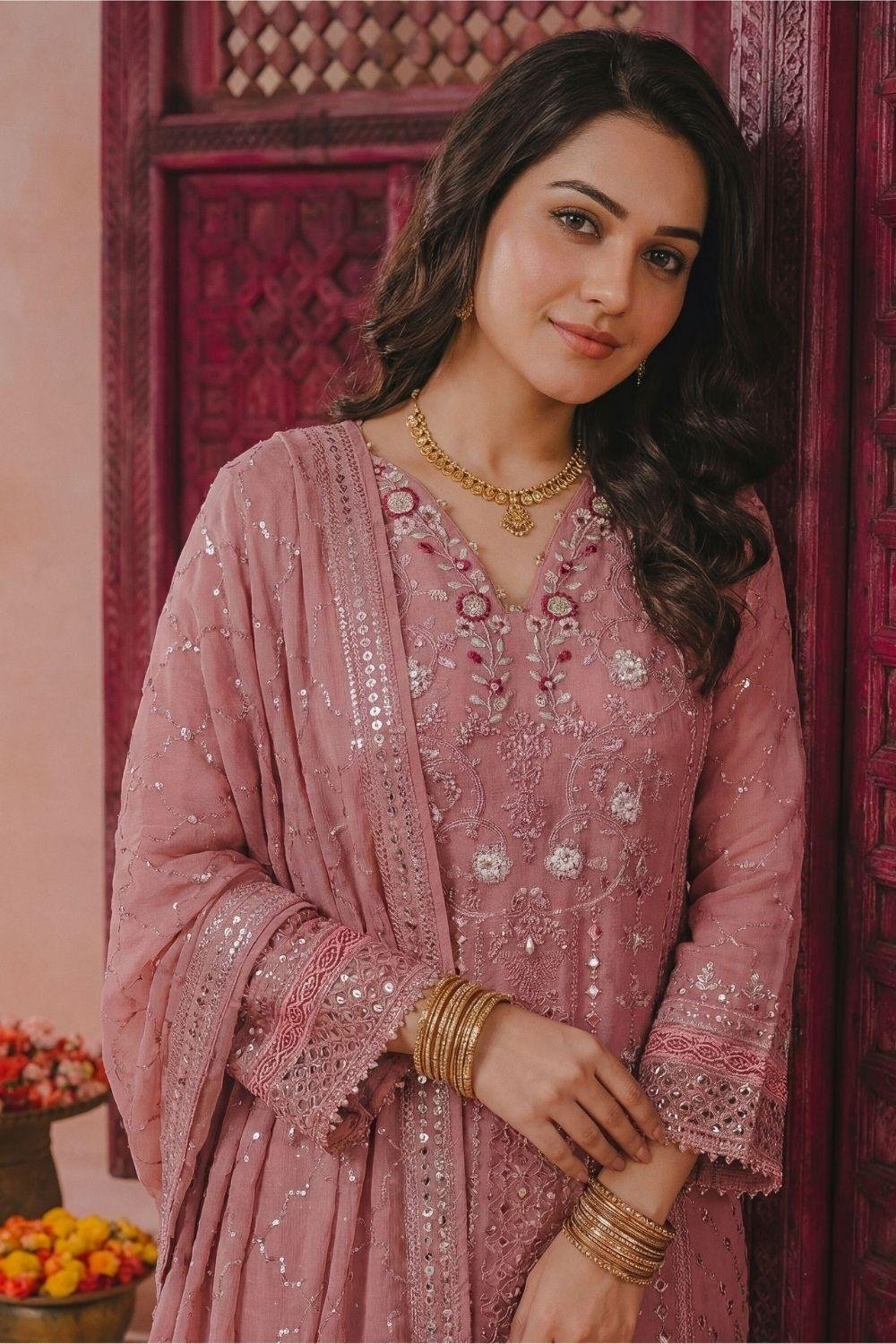 WHY CHOOSE THIS UNIQUE DESIGN? THIS SELECTION IS SPECIALLY CRAFTED FOR THOSE WHO APPRECIATE THE UNIQUE TEXTURE OF CHIFFON AND HAND-CRAFTED ARTISTRY. EACH PIECE IS DESIGNED TO PROVIDE MAXIMUM COMFORT DURING SPECIAL OCCASIONS WHILE MAINTAINING A HIGH-END AESTHETIC. WHETHER IT IS A WEDDING FUNCTION OR A FORMAL DINNER, THIS RIWAJ SUIT IS PERFECT FOR MAKING A BOLD STATEMENT. THE DURABLE FABRIC AND FINE EMBROIDERY ENSURE THAT THIS ARTICLE REMAINS A STAPLE IN YOUR PREMIUM WARDROBE. OUR NEW COLLECTION BRINGS YOU THE BEST QUALITY FABRIC THAT STANDS OUT IN EVERY EVENT.