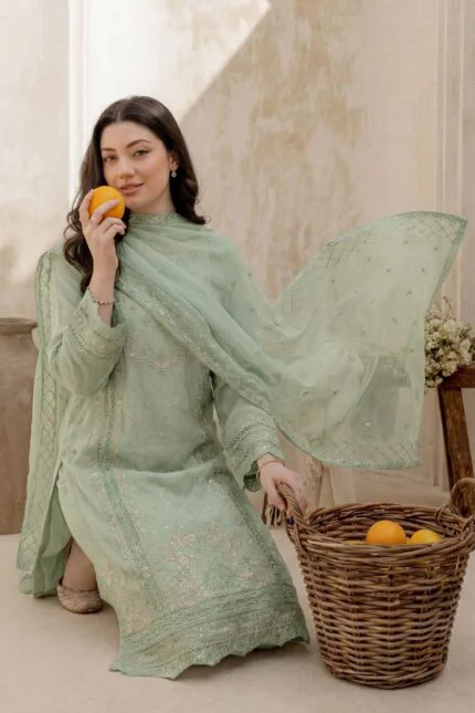 Experience the perfect blend of style with our EMBROIDERED LAWN PRINT 3-piece set by TANISH. This ensemble is designed to provide a graceful silhouette for any festive or formal occasion.
