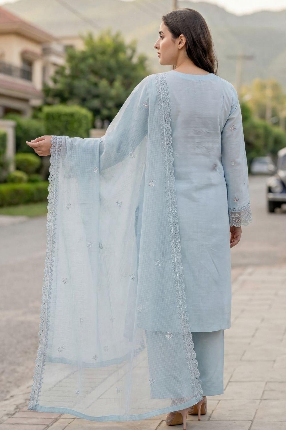 WHY CHOOSE THIS UNIQUE DESIGN? THIS SELECTION IS SPECIALLY CRAFTED FOR THOSE WHO APPRECIATE THE UNIQUE TEXTURE OF SLUB LAWN AND DETAILED CHIKEN-KARI ARTISTRY. EACH PIECE IS DESIGNED TO PROVIDE A HIGH-END AESTHETIC FOR BOTH CASUAL AND FORMAL GATHERINGS. WHETHER IT IS A DAY EVENT OR AN EVENING GATHERING, THIS BEST WADA SUIT IS PERFECT FOR MAKING A BOLD STATEMENT. THE DURABLE FABRIC AND FINE CUTWORK ENSURE THAT THIS ARTICLE REMAINS A STAPLE IN YOUR TRADITIONAL WARDROBE. THE SOFT MUNAR DUPATTA ADDS A TOUCH OF GRACE TO THE ENTIRE LOOK.