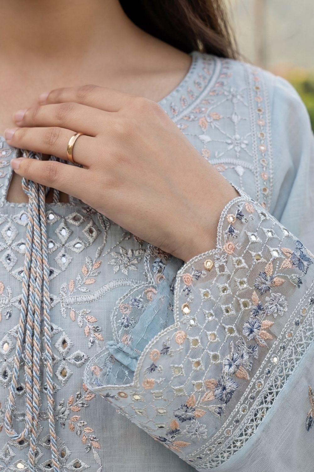 WADA | BEST CHIKENKARI EMBROIDERED SLUB LAWN 3PC SUIT