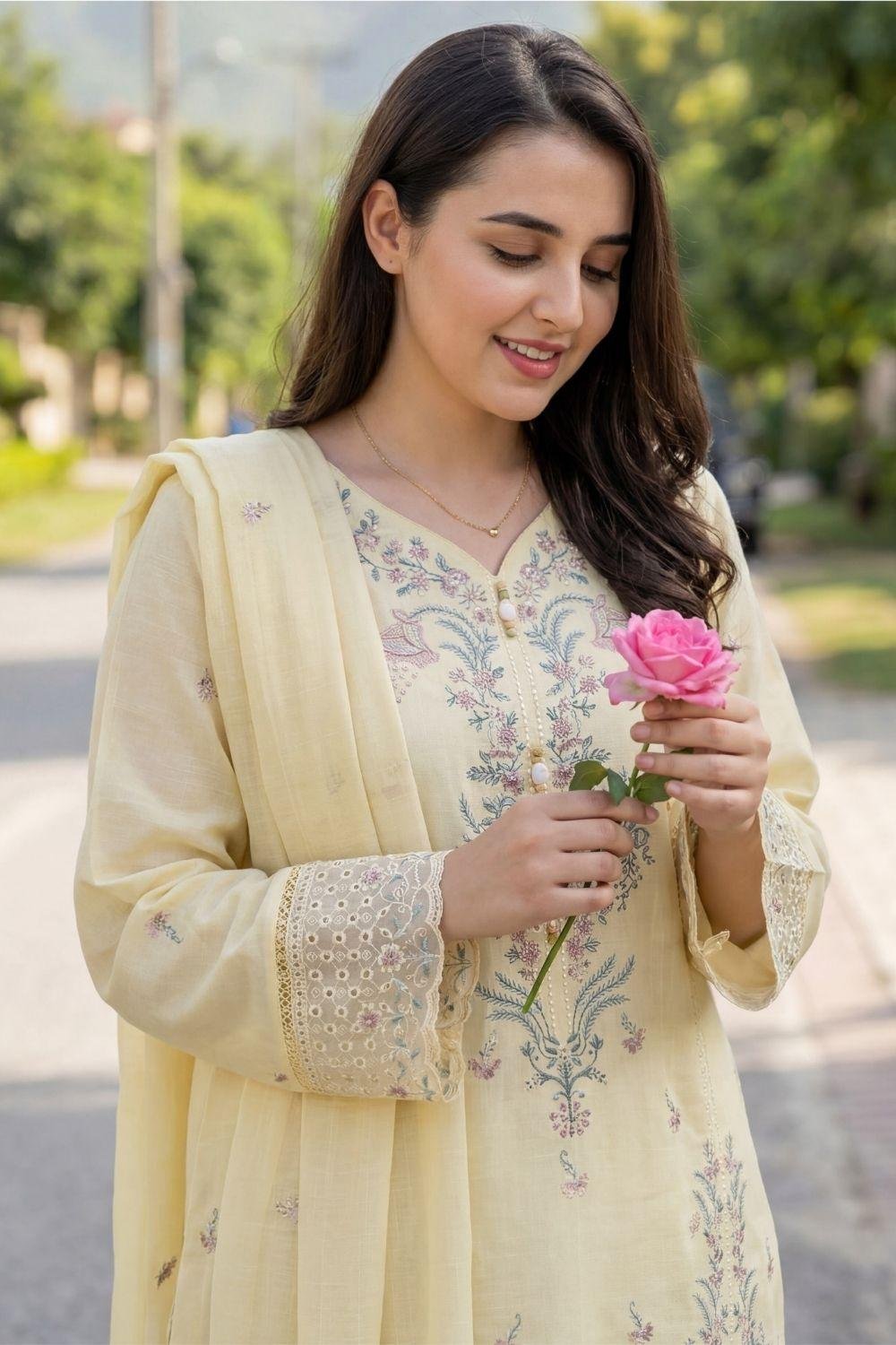 WHY CHOOSE THIS UNIQUE DESIGN? THIS SELECTION IS SPECIALLY CRAFTED FOR THOSE WHO APPRECIATE THE UNIQUE TEXTURE OF SLUB LAWN AND DETAILED CHIKEN-KARI ARTISTRY. EACH PIECE IS DESIGNED TO PROVIDE A HIGH-END AESTHETIC FOR BOTH CASUAL AND FORMAL GATHERINGS. WHETHER IT IS A DAY EVENT OR AN EVENING GATHERING, THIS BEST WADA SUIT IS PERFECT FOR MAKING A BOLD STATEMENT. THE DURABLE FABRIC AND FINE CUTWORK ENSURE THAT THIS ARTICLE REMAINS A STAPLE IN YOUR TRADITIONAL WARDROBE. THE SOFT MUNAR DUPATTA ADDS A TOUCH OF GRACE TO THE ENTIRE LOOK.
