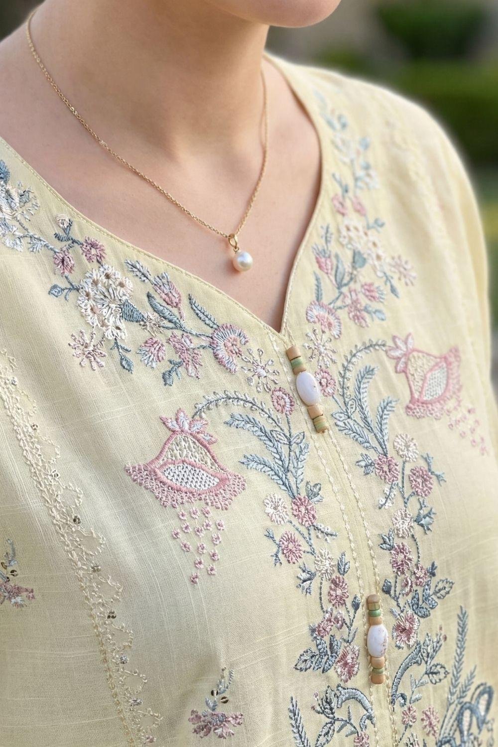 WADA | BEST CHIKENKARI EMBROIDERED SLUB LAWN 3PC SUIT