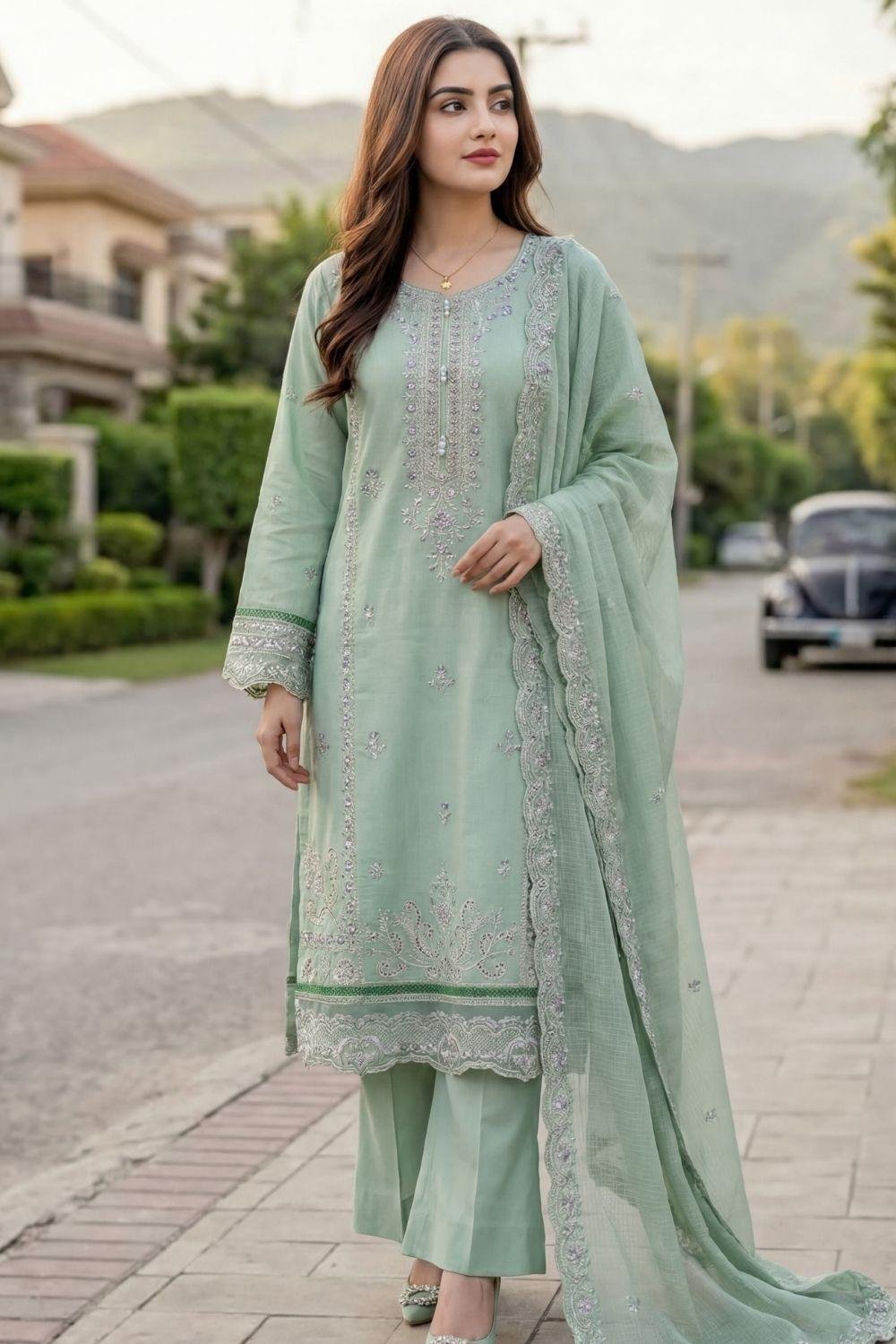 WHY CHOOSE THIS UNIQUE DESIGN? THIS SELECTION IS SPECIALLY CRAFTED FOR THOSE WHO APPRECIATE THE UNIQUE TEXTURE OF SLUB LAWN AND DETAILED CHIKEN-KARI ARTISTRY. EACH PIECE IS DESIGNED TO PROVIDE A HIGH-END AESTHETIC FOR BOTH CASUAL AND FORMAL GATHERINGS. WHETHER IT IS A DAY EVENT OR AN EVENING GATHERING, THIS BEST WADA SUIT IS PERFECT FOR MAKING A BOLD STATEMENT. THE DURABLE FABRIC AND FINE CUTWORK ENSURE THAT THIS ARTICLE REMAINS A STAPLE IN YOUR TRADITIONAL WARDROBE. THE SOFT MUNAR DUPATTA ADDS A TOUCH OF GRACE TO THE ENTIRE LOOK.