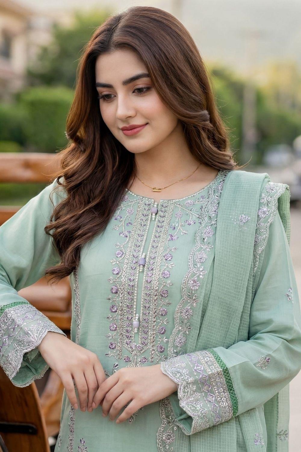 ELEVATE YOUR STYLE WITH THIS WADA ENSEMBLE, THE BEST CHOICE FOR A SOPHISTICATED AND TRADITIONAL LOOK. THIS UNSTITCHED 3-PIECE MASTERPIECE FROM OUR SLUB LAWN COLLECTION COMBINES INTRICATE CHIKEN-KARI EMBROIDERY WITH THE FINENESS OF LUXURY FABRIC, ENSURING ELEGANCE IN EVERY STITCH. DESIGNED FOR THE MODERN WOMAN, THIS ARTICLE PROVIDES BOTH STYLE AND COMFORT FOR THE UPCOMING 2026 SUMMER SEASON. OUR QUALITY ENSURES A BREATHABLE AND LUXURIOUS FEEL ALL DAY LONG.